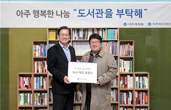 아주캐피탈은 지난 1일부터 2주간 본사 1층 로비에 마련된 도서관 책장에 직원들은 집에서 가져온 책을 채워 넣었고, 지점·센터 등 전국 영업현장에 근무하는 직원들은 행랑과 택배 등을 통해 책을 보내왔다. 이렇게 모인 도서는 아주복지재단에서 문을 연 '꿈꾸는 작은 도서관' 1·2호점에 전달됐다.