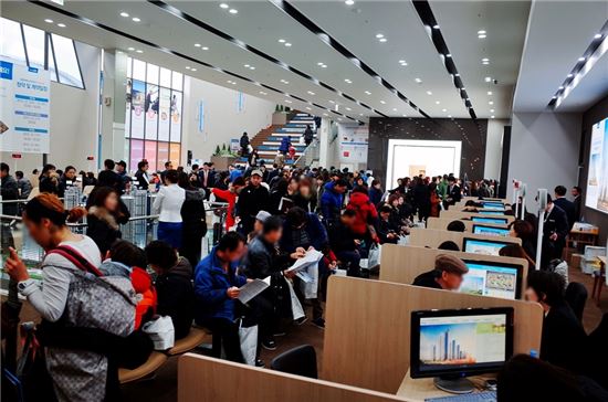 오피스텔도 15~16일 이틀간 견본주택에서 진행된 청약접수 결과 437실 모집에 5075명이 접수해 평균 11.61대 1의 경쟁률을 기록했다. 전용 36㎡A타입은 92실 모집에 1762명이 몰려 19.15대 1로 마감됐고 전용 36㎡B타입은 23실 공급에 1452명이 청약해 최고 경쟁률인 63.13대 1을 기록했다.