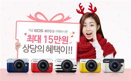 [아시아경제 김유리 기자] 캐논코리아컨슈머이미징이 크리스마스와 연말을 맞이해 미러리스 카메라 'EOS M10' 구매 고객을 대상으로 최대 15만원 혜택의 이벤트를 진행한다고 22일 밝혔다.
