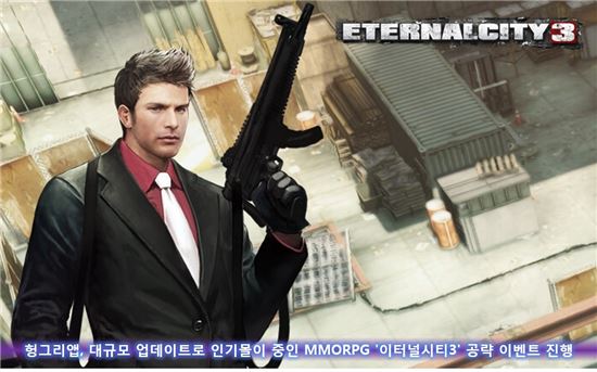 [아시아경제 온라인이슈팀] 몬스터넷에서 서비스하는 아포칼립스 MMORPG '이터널시티3'가 변화, 승격, 신출이라는 세 가지 테마로 대규모 업데이트를 진행하며 유저수가 급증하고 있는 가운데 유저 커뮤니티 '이터널시티3 헝그리앱'에서는 유저들이 새로운 게임 콘텐츠를 쉽게 공략할 수 있도록 문화상품권을 지급하는 이벤트를 진행하고 있다.
