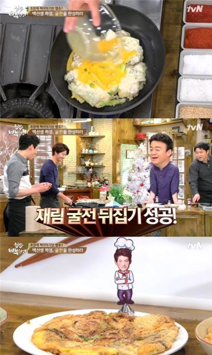 방송에서 백종원은 초간단 굴전 레시피를 공개했다.