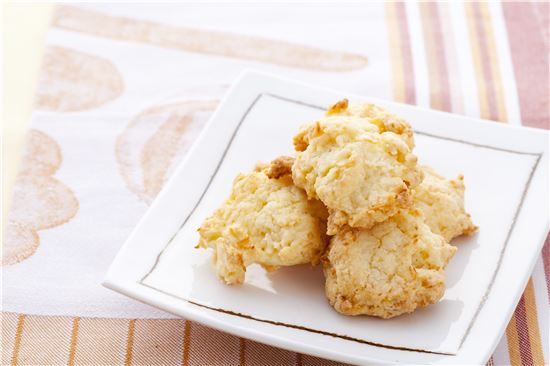 버터 140g, 설탕 100g, 소금 2g, 달걀 60g, 바닐라 에센스 1g, 박력분 200g, 롱 코코넛 70g
