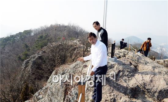 [포토]최영호 남구청장, 금당산 체육시설 점검 최영호 남구청장은 30일 오전, 금당산 체육시설, 가로등, 벤치 등 등산로 전반을 점검한 뒤 안전시설 보안 조치하여 안전사고 예방에 최선을 다할 것을 당부했다. 사진제공=광주시 남구