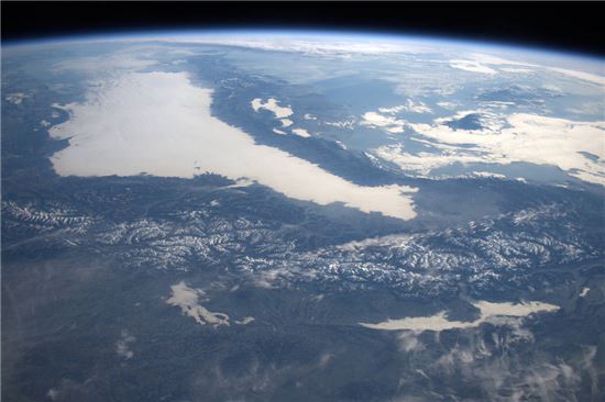 눈 덮인 알프스 산맥이 한 눈에 들어왔다. ISS에 머물고 있는 유럽우주기구(ESA) 소속 피크(Tim Peake) 우주비행사가 지난 27일 1200㎞에 이르는 알프스산맥의 모습을 촬영해 자신의 트위터에 올렸다.