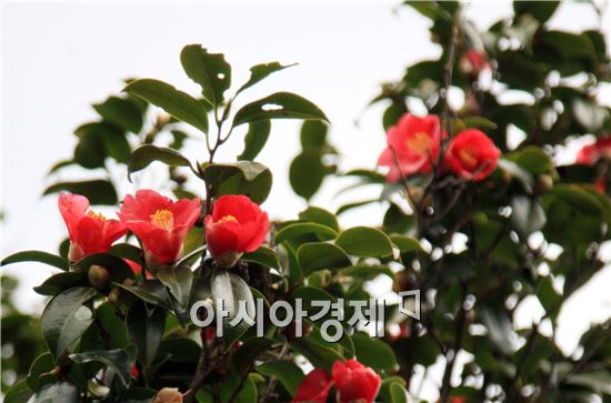 [포토]한파 녹이는 새악시 입술 연상케하는  동백꽃 한 해를 마무리하는 31일 한파가 몰아친 가운데 완도군 일대에 새악시 빨간 입술을 연상케 하는 동백꽃이 앞 다퉈 꽃망울을 터트려 시선을 붙잡고 있다. 사진제공=완도군
