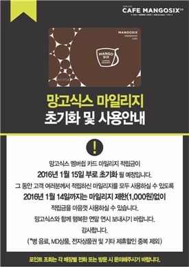 망고식스의 2015년도 멤버십 마일리지는 오는 1월 15일을 기준으로 소멸된다.