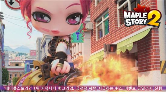 [아시아경제 온라인이슈팀] 넥슨에서 서비스하는 캐주얼 온라인 게임 ‘메이플스토리2’가 지난 2015년 12월31일 신규 대륙 ‘카르카르 아일랜드’를 추가하는 업데이트를 시행해 유저들의 이목이 집중된 가운데 유저 커뮤니티 ‘메이플스토리2 헝그리앱’에서는 유저들이 게임을 풍성하게 즐길 수 있도록 금전적 혜택을 지급하는 퀴즈 이벤트를 5일까지 진행한다.