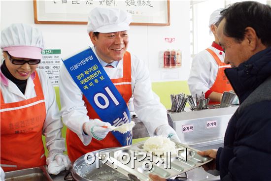 [아시아경제 노해섭 기자]광주 북구(을) 국회의원 예비후보인 더불어민주당 이형석 전 광주시 경제부시장이 자원봉사자들과 함께 효령노인복지타운을 찾아 어르신들에게 배식봉사활동을 펼쳤다.