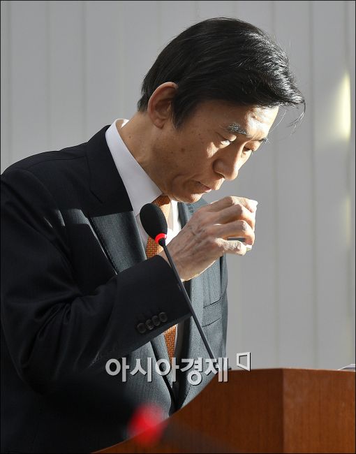 [아시아경제 윤동주 기자] 윤병세 외교부 장관이 7일 서울 여의도 국회에서 열린 외통위 전체회의에 출석, 북핵실험·한일 위안부 협상과 관련해 현안보고를 하는 도중 속이 타는듯 물을 마시고 있다.
