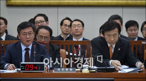 [아시아경제 윤동주 기자] 홍용표 통일부 장관이 7일 서울 여의도 국회에서 열린 외통위 전체회의에 출석, 의원들 질의에 답변하고 있다.