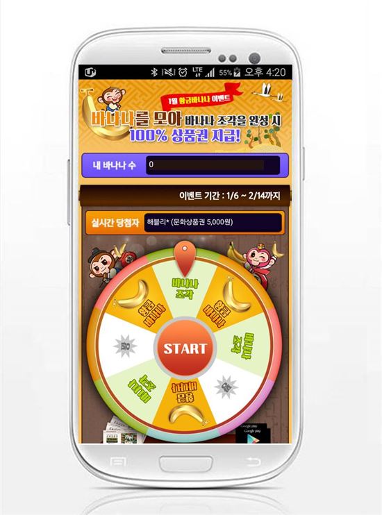 이번 이벤트는 ‘1월 황금바나나 이벤트’로 추천한 친구가 가입할 때마다 획득한 바나나를 통해 원하는 상품에 응모하면 추첨을 통해 구글기프트카드와 문화상품권을 지급한다. 본 이벤트는 오는 2월14일까지 진행하며 자세한 내용은 모비 내의 이벤트 페이지를 통해 확인할 수 있다.
