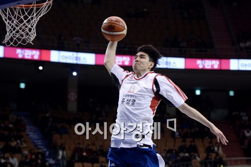[잠실=아시아경제 김현민 기자] 2015~2016 프로농구 올스타전이 10일 서울 잠실실내체육관에서 열렸다. 본 경기에 앞서 덩크 콘테스트에서 LG 김종규가 호쾌한 덩크를 성공시키고 있다.