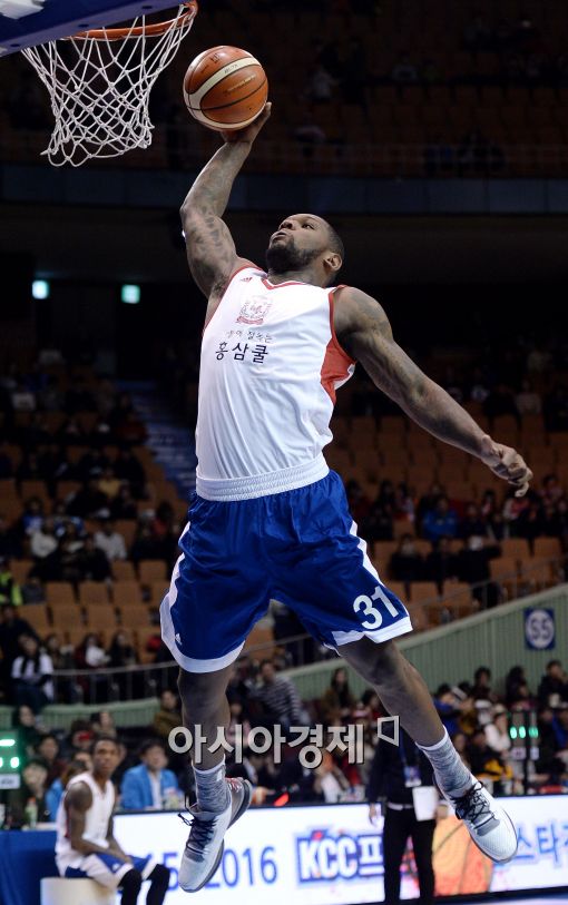 [잠실=아시아경제 김현민 기자] 2015~2016 프로농구 올스타전이 10일 서울 잠실실내체육관에서 열렸다. 본 경기에 앞서 덩크 콘테스트에서 동부 맥키네스가 호쾌한 덩크를 성공시키고 있다.