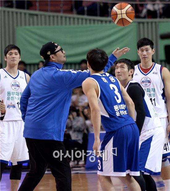 [잠실=아시아경제 김현민 기자] 2015~2016 프로농구 올스타전이 10일 서울 잠실실내체육관에서 열렸다. 가수 김태우가 점프볼 시구하고 있다.