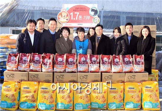 [아시아경제 김현정 기자] 홈플러스는 롯데네슬레코리아의 반려동물 사업부문 '네슬레 퓨리나'와 홈플러스 e파란재단을 통해 사료 1.7톤(t)을 유기반려동물 보호센터 '400마리 강아지의 행복한 보금자리'에 전달했다고 14일 밝혔다. 이번 기부는 지난 12월10일부터 1월6일까지 '제4회 유기반려동물을 위한 100g 사랑' 캠페인을 진행한 데 따른 것이다.