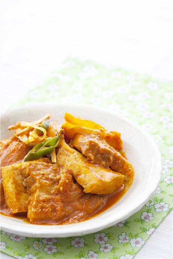다시마 육수 1컵, 고추장 1술, 고춧가루 1.5술, 마늘 0.5술, 간장 1술, 김칫국물 1/4컵, 설탕·생강 약간씩