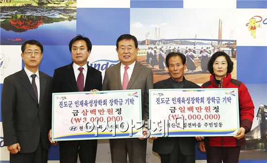 18일 군에 따르면 지난 14일 현대자동차에서 300만원을, 의신면 칠전마을 주민들이 100만원의 장학금을 각각 (재)진도군인재육성장학회에 전달했다.