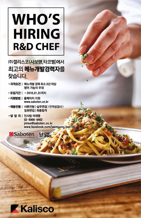 캘리스코는 이번 공개 채용을 통해 글로벌 브랜드에 걸맞는 전문성과 창의성을 갖춘 메뉴개발 경력자를 선발·채용한다는 계획이다.