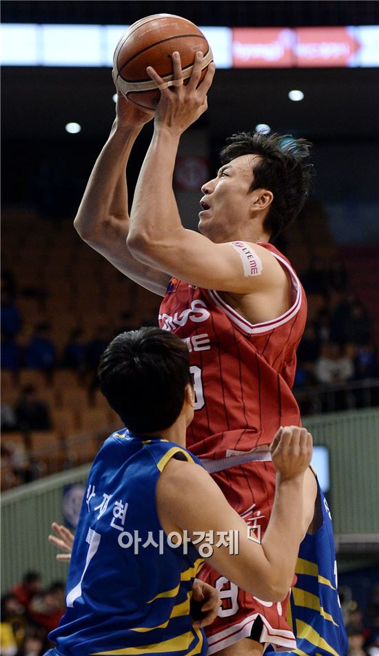 [잠실=아시아경제 김현민 기자] 프로농구 서울 삼성과 창원 LG의 경기가 20일 잠실실내체육관에서 열렸다. LG 김영환이 상대 수비를 뚫고 슛하고 있다.