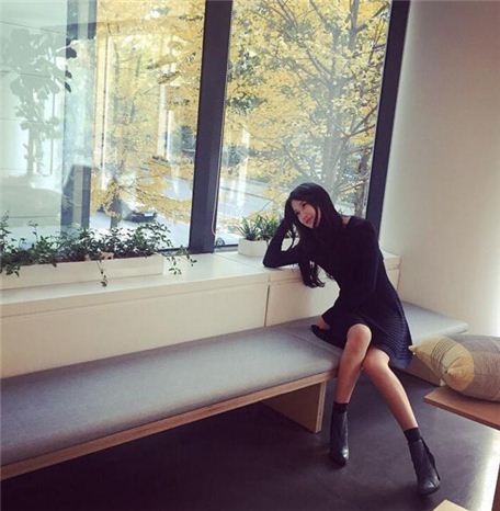 그는 사진에서 창밖을 바라보며 옅은 미소를 짓고 있다. 청순한 긴 생머리와 길게 뻗은 각선미가 눈길을 사로잡는다.