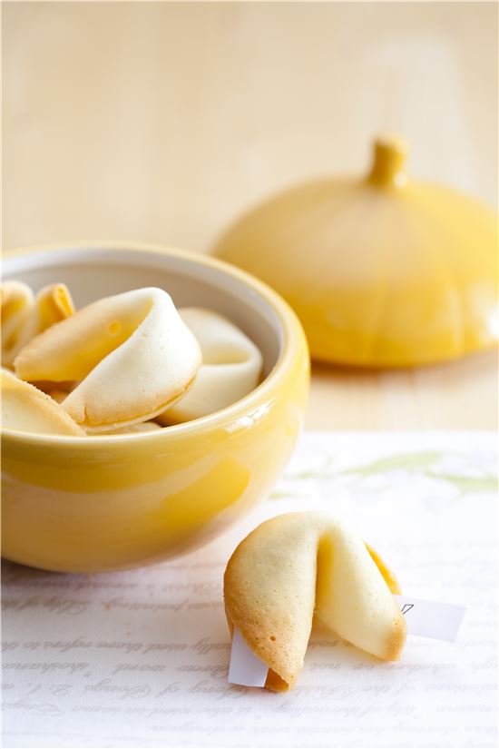 5. 180℃로 예열된 오븐에 8~10분 굽는다. 반죽 위에 문구가 적힌 종이를 놓는다.