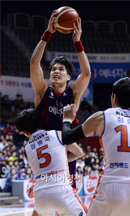 [고양=아시아경제 김현민 기자] 프로농구 고양 오리온과 인천 전자랜드의 경기가 22일 고양체육관에서 열렸다. 오리온 장재석이 상대 수비를 뚫고 공격하고 있다.