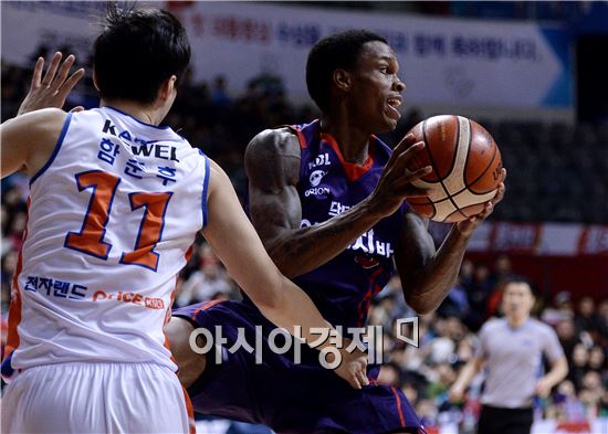 [고양=아시아경제 김현민 기자] 프로농구 고양 오리온과 인천 전자랜드의 경기가 22일 고양체육관에서 열렸다. 오리온 조 잭슨이 상대 수비를 뚫고 공격하고 있다.