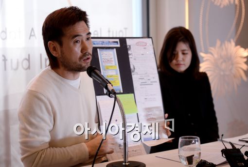 [아시아경제 김현민 기자] 프로축구 선수 김병지가 25일 서울 종로구 르메이에르빌딩의 한 음식점에서 '아들 학교폭력' 사건 관련 공식 입장 발표 기자회견을 하고 있다.