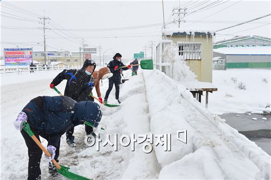 [아시아경제 김재길 기자]고창군(군수 박우정)이 올 들어 가장 많은 눈이 내린 24일 주민들의 교통 불편과 폭설로 인한 피해를 줄일 수 있도록 전 공무원들을 동원해 제설작업을 실시했다.