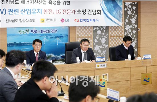 전라남도는 26일 도청에서 ㈜LG와 한전의 전기자동차(EV)전문가를 초청, 전남 에너지산업 10개년 계획, EV산업의 현재와 미래, 국내외 전기차 동향 및 사업화 방안, 관련 산업 투자유치전략 등을 논의하는 간담회를 가졌다. 사진제공=전남도
