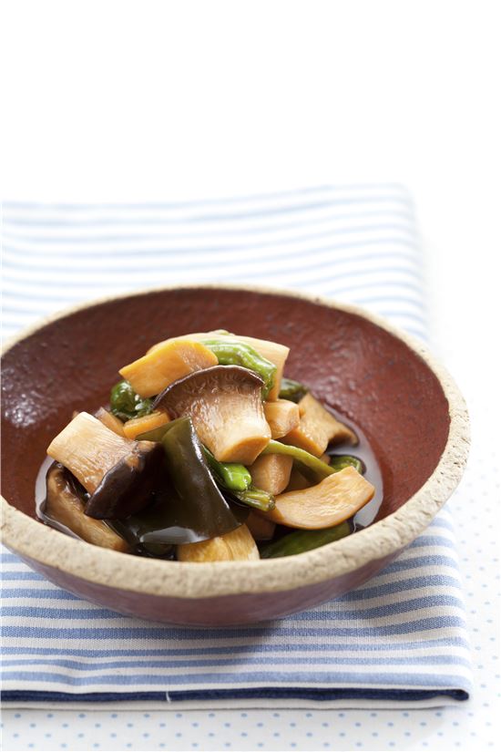 4. 조림장이 끓으면 새송이버섯을 넣어 2-3분간 끓인 후 꽈리고추를 넣는다.