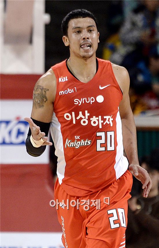 [잠실=아시아경제 김현민 기자] 프로농구 서울 SK와 창원 LG의 경기가 27일 잠실학생체육관에서 열렸다. SK 박승리가 덩크슛을 성공시킨 뒤 세리머니하고 있다.