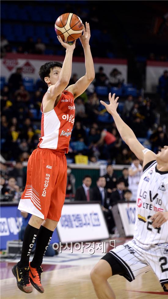 [잠실=아시아경제 김현민 기자] 프로농구 서울 SK와 창원 LG의 경기가 27일 잠실학생체육관에서 열렸다. SK 김선형이 상대 수비를 뚫고 슛하고 있다.