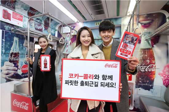 2월29일까지 서울 지하철 2·3호선에서 운행되는 지하철 내 코카-콜라 이벤트 칸은 ‘이 맛, 이 느낌!’ 캠페인을 위해 특별히 촬영된 수많은 화보 중 가장 매력적인 컷들로만 엄선돼 꾸며졌다.