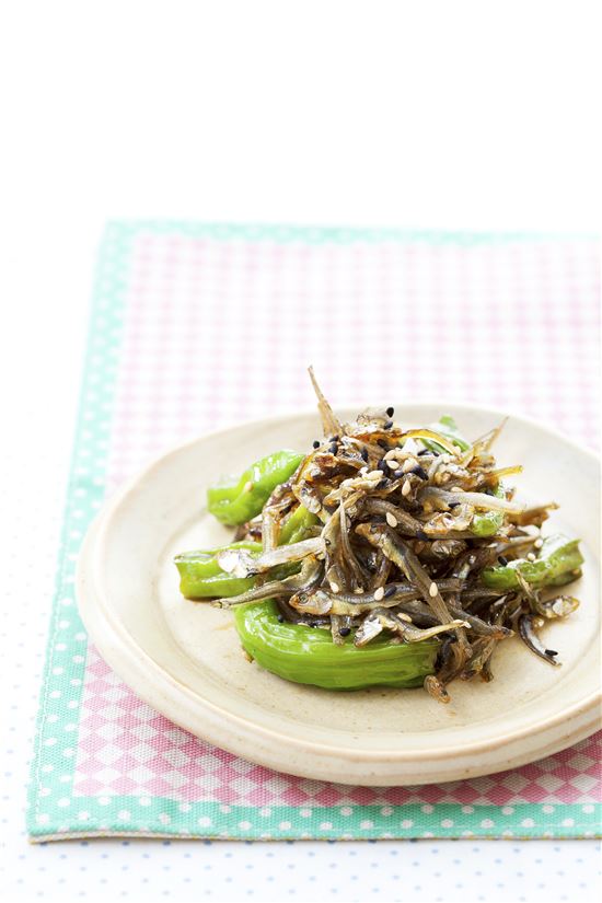 3. 식용유를 두른 프라이팬에 멸치를 볶다가 꽈리고추를 넣고 볶는다.
