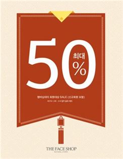 이번 행사는 더페이스샵 전국 매장에서 제품을 구입하는 모든 고객에게 품목별로 20~50% 할인혜택이 제공된다. 온라인 회원은 더페이스샵 직영몰에서 구입해야만 오프라인 매장과 동일한 할인 혜택을 받을 수 있다.