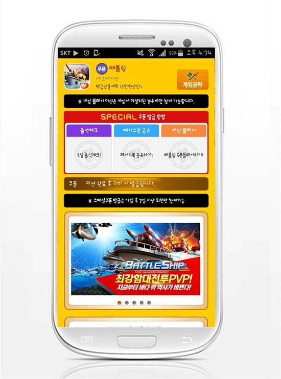 [아시아경제 온라인이슈팀] 국내 모바일 게임 시장에서 95% 이상의 점유율을 보이고 있는 모바일 게임 커뮤니티 헝그리앱이 출시한 사전등록 1위 어플리케이션 ‘모비’가 유저들이 게임을 더욱 풍성하게 즐길 수 있도록 파격적 혜택을 무료로 지급하는 스페셜 쿠폰을 추가했다. 이번에 추가한 스페셜 쿠폰은 인기 모바일 전략 해상 시뮬레이션 ‘배틀쉽’ 쿠폰으로 등록하면 5만원 상당의 백금 선물 세트를 지급한다.