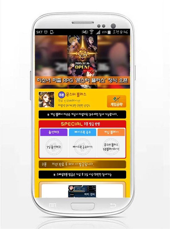 [아시아경제 온라인이슈팀] 국내 모바일 게임 시장에서 95% 이상의 점유율을 보이고 있는 모바일 게임 커뮤니티 헝그리앱이 출시한 사전예약 1위 어플리케이션 ‘모비’가 유저들이 게임을 더욱 풍성하게 즐길 수 있도록 파격적 혜택을 무료로 지급하는 스페셜 쿠폰을 추가했다. 이번에 추가한 스페셜 쿠폰은 신작 모바일 퍼즐 RPG(Role Playing Game, 롤플레잉 게임) ‘몬스터플러스’ 쿠폰으로 등록하면 3만3000원 상당의 마법석 30개를 지급한다.