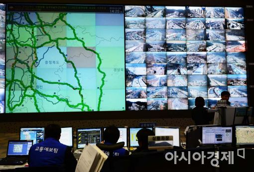 [아시아경제 백소아 기자] 민족 최대의 명절 설날을 사흘 앞둔 5일 경기도 성남시 궁내동 한국도로공사 교통센터에서 관계자들이 교통량을 주시하고 있다.