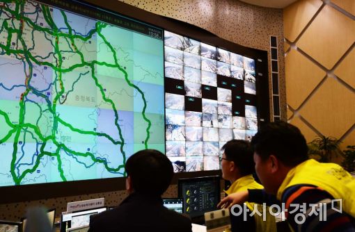 [아시아경제 백소아 기자] 민족 최대의 명절 설날을 사흘 앞둔 5일 경기도 성남시 궁내동 한국도로공사 교통센터에서 관계자들이 교통량을 주시하고 있다.