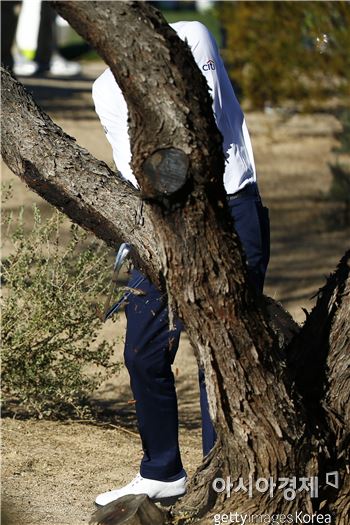 'CIMB 챔프' 저스틴 토마스(미국)가 나무 뒤에서 샷을 하다가 샤프트가 부러지는 장면이다. 6일(한국시간) 미국 애리조나주 스코츠데일골프장(파71ㆍ7266야드)에서 끝난 미국프로골프(PGA)투어 웨이스트매니지먼트 피닉스오픈(총상금 650만 달러) 2라운드 15번홀(파5)에서다. 아이언의 희생을 앞세워 페어웨이로 탈출한 뒤 기어코 '3온 2퍼트' 파를 잡아냈다는 게 놀랍다.