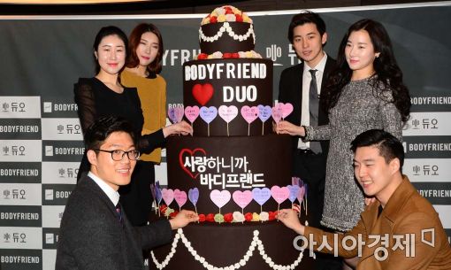 [아시아경제 백소아 기자] 14일 서울 강남구 바디프랜드 도곡타워에서 열린 밸런타인데이 기념 미팅파티에서 참가자들이 1.8m 대형 초콜릿케이크에 솔로탈출 염원의 메시지를 꽂고 있다.