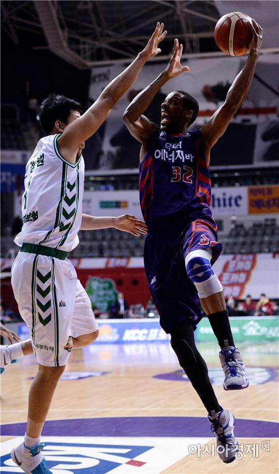 [고양=아시아경제 김현민 기자] 프로농구 고양 오리온과 원주 동부의 경기가 18일 고양체육관에서 열렸다. 오리온 헤인즈가 상대 수비를 뚫고 공격하고 있다.