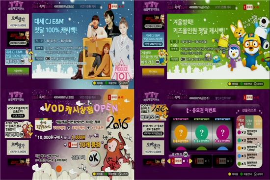 매일매일이벤트 서비스는 포털 내 VOD 캐시 구매 프로모션, VOD 구매 동시 이벤트 응모, 월정액 상품 가입 즉시 실시간 경품 응모 등 재미 요소를 강화했다.