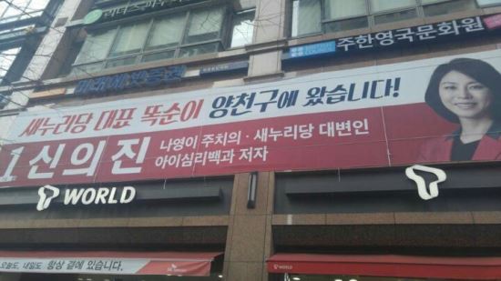서울 양천구에 출마한 신의진 의원은 지난달 28일부터 자신의 선거 사무실 앞에 '나영이 주치의'라는 문구가 적힌 현수막을 내걸었다.