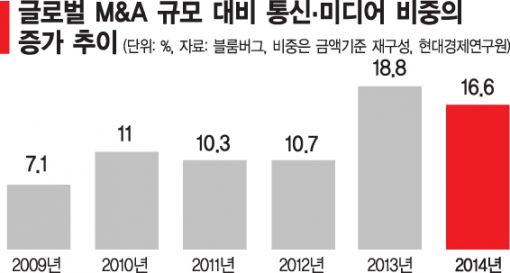 ◆체급 키워, 해외 기업들과 경쟁해야 = 이미 해외 이동통신사들도 이같은 움직임을 보이고 있다. 미국 최대 이동통신사인 버라이즌은 지난해 4월 AOL을 인수한 데 이어 야후의 인터넷 사업 부문 인수에 관심을 보이고 있다. 미국 최대 케이블방송사인 컴캐스트도 야후에 눈독을 들이고 있다.