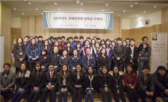 [아시아경제 조인경 기자] 재단법인 성혜장학회(이사장 김성혜·한세대학교 총장)는 지난 27일 영산양재홀에서 김성혜 이사장과 장학회 임원, 장학생, 학부모 등 100여명이 참석한 가운데 2016년도 1기 성혜장학회 장학금 수여식을 개최했다고 29일 밝혔다.