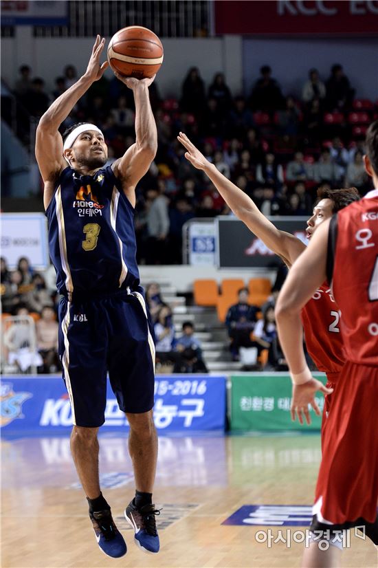 [전주=아시아경제 김현민 기자] 전주 KCC와 안양 KGC의 2015~2016 프로농구 4강 플레이오프 2차전이 9일 전주실내체육관에서 열렸다. KCC 전태풍이 상대 수비를 뚫고 공격하고 있다.