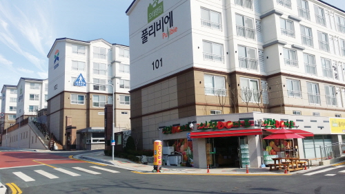 대지 16,143㎡에 전용 56㎡, 49㎡, 38㎡ 총 172세대 중 회사보유분 일부세대를 특별분양 중인 ‘오태명당 풀리비에’는 지하1층 지상4층 규모의 유럽풍 타운하우스 스타일로 구성했다.