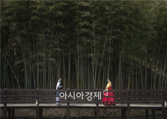 '죽녹원 거닐며 대나무처럼 푸른 사랑 서약'